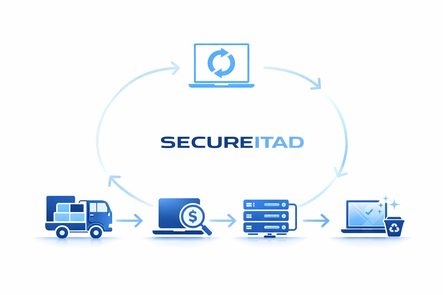 Devices are audited, data is permanently removed, and equipment is refurbished or responsibly recycled.